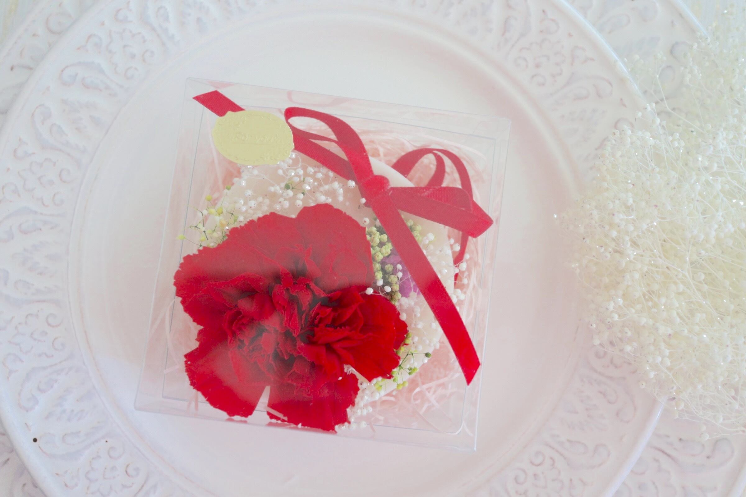 母の日/カーネーション/ブリザードフラワー/赤/ドライフラワー/サシェ/白